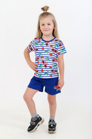 Детский трикотажный костюм из трикотажного полотна "кулирка". Изделие из хлопка. Футболка с коротким рукавом и горловиной округлой формы.