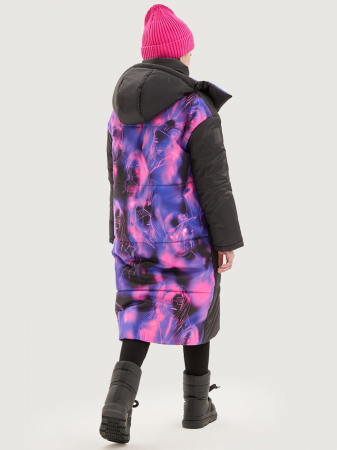 Стеганое уютное пальто-одеяло ЛАЙТ с эксклюзивным ярким принтом на спине, с удобной застежкой на магнитные кнопки. Пальто из мембранной ткани 5000/5000 с водо- грязеотталкивающей технологией TEFLON.