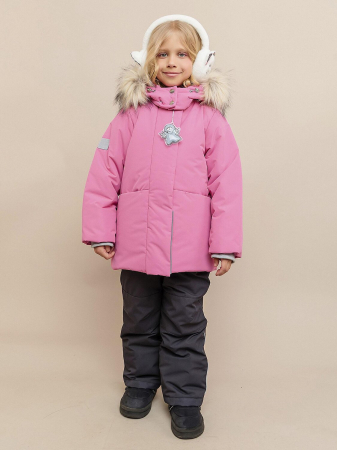 Комплект для девочки "Азалия" в нежном сочетании розового и чугунного оттенков. Такой контраст создает современный образ, сохраняя все преимущества зимнего комплекта.