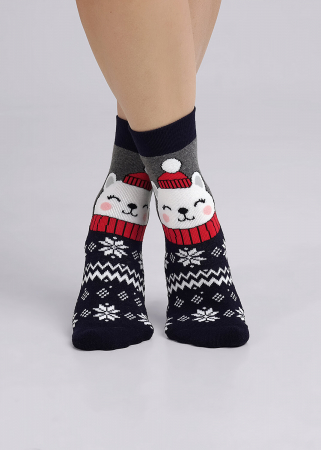мягкие плюшевые Новогодние детские носки со скандинавским орнаментом и рисунком белого медведя