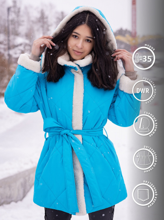 Куртка для девочки Влада зимняя с поясом и капюшоном в голубой расцветке с акцентными вставками из белого иск.меха. Стильная стеганая куртка для подростков. Мягкий и приятный на ощупь материал, который отлично защищает от влаги и ветра. С высокотехнологичным утеплителем из гипоаллергенного, износоустойчивого и водостойкого материала, который хорошо сохраняет тепло.