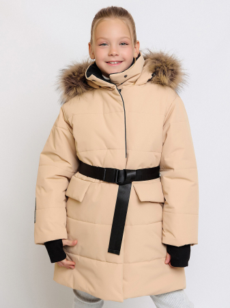 Пальто зимнее для девочки в песочной расцветке из мембранной ткани обеспечит защиту от влаги и ветра. Подклад полибрушед делает изделие очень тёплым и лёгким, хорошо защищающим от ветра и влаги. Пальто имеет ветрозащитную внешнюю планку на магнитах, которая защитит от поддува. Ремень сделает силуэт более выраженным, на спинке предусмотрена модная декоративная шлевка. Трикотажные манжеты с прорезью под пальчик для большего тепла и комфорта. Высокий тёплый ворот позволяет в более тёплую погоду не носить шарф. Тёплые большие карманы на магнитах для согрева рук, утяжка талии резинкой с фиксатором, внутренний карман, капюшон втачной с регулировкой и со съёмной опушкой на молнии. Светоотражающие элементы по принципу 360 градусов видимости обеспечат безопасность в темное время суток.