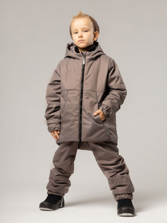 Костюм демисезонный из мембранной ткани. Куртка: удлиненная спинка, рукава на манжетах, несъемный капюшон, застежка-молния с защитной планкой, светоотражающие нашивки и кант. Полукомбинезон: регулируемые лямки, по низу манжеты на резинках с брендированной штрипкой на двухуровневых пуговицах. Куртка: материал мембранная ткань, утеплитель Hetta micro 150 г/кв.м, подкладочный материал кулирная гладь. Брюки: материал мембранная ткань, утеплитель Hetta micro 100 г/кв.м, подкладочный материал кулирная гладь 100% хлопок. Температурный режим от 0 до -10 гр, в зависимости от теплообмена ребенка.