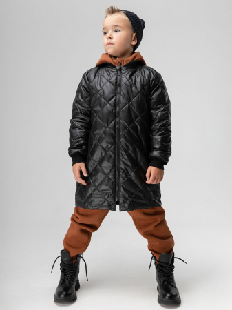 Стеганый удлиненный бомбер для детей. Детали: рукава на манжетах, карманы в боковых швах, застежка - молния. Внутри изделия легкий гипоаллергенный современный утеплитель Hetta micro, надежная защита от холода при минимальном объеме, сохраняет упругость и форму после многократных стирок. Материал верха: Fitsystem 100% полиэстер, утеплитель Hetta micro 100 г/кв.м, подкладочный материал кулирная гладь 100% хлопок. Температурный режим от 0 до +15 градусов, в зависимости от индивидуального теплообмена и промежуточнго слоя одежды.