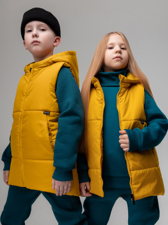 Стильный жилет на молнии, по бокам прорезные карманы, несъемный капюшон.Материал жилета Дюспо воздухообменный и ветрозащитный. Материал верха: Дюспо 100% полиэстер, утеплитель Hetta Filt S2 150 г/кв.м, подкладочный материал кулирная гладь 100% хлопок