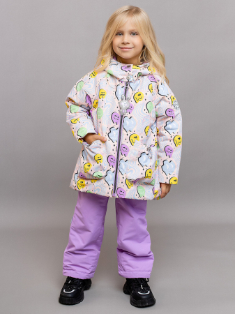 Комплект ЭЛИНА выполнен из плотной мембраной ткани в сиреневой расцветке. Подклад куртки - мягкий хлопковый трикотаж, подклад рукавов из гладкой приятной таффеты. Полукомбинезон на подкладе из мягкого трикотажа с гладкой наружной и ворсовой внутренней поверхностью, которая заменяет утеплитель. Куртка с центральной застежкой-молнией и ветрозащитной планкой, боковыми объемными карманами, которые декорированы кулисой и фиксаторами, позволяющей менять объем кармана, удлиненной спинкой, кулисой по лицевой части капюшона низу куртки, с эластичной тесьмой на обтачке рукавов, обеспечивающей плотный обхват и защиту от поддува в рукавах. Полукомбинезон с удобными карманами по бокам , эластичной регулировкой талии, бретелями и регулируемым низом брючин. Снуд из мягкого эластичного трикотажа можно носить не только как шарф, но и как шапочку или повязку на голову.