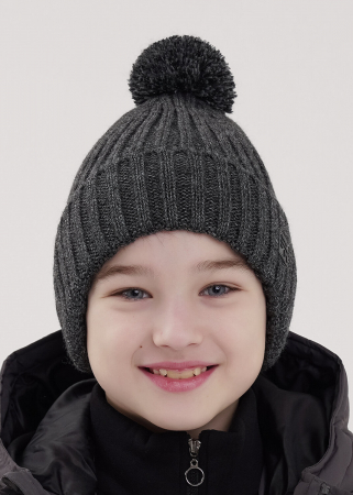 Детская шапка с отворотом и помпоном из светоотражающей пряжи. Декорирован стильной нашивкой, утепление флисом по всей голове. Идеально подойдёт для зимы.