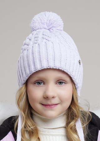 Десткая шапка с ушками и завязками, ниточным помпоном. Декорирована стильной нашивкой. Утеплена флисовым подкладом по всей голове. Идеально подойдёт для холодной зимы