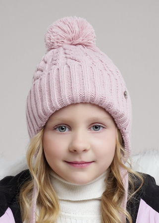 Десткая шапка с ушками и завязками, ниточным помпоном. Декорирована стильной нашивкой. Утеплена флисовым подкладом по всей голове. Идеально подойдёт для холодной зимы