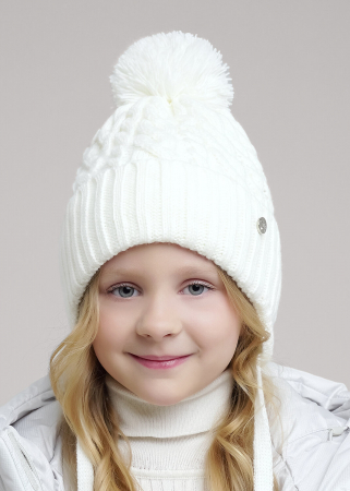 Десткая шапка с ушками и завязками, ниточным помпоном. Декорирована стильной нашивкой. Утеплена флисовым подкладом по всей голове. Идеально подойдёт для холодной зимы