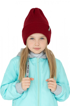 Детская шапка двухслойная с отворотом. Связана эластичным узором резинка из плотной, мягкой акриловой пряжи с мериносом (30%). Двухслойность и отворот делают шапку достаточно объемной, но она смотрится аккуратно. Подходит для осени и зимы. Спереди небольшая брендированная светоотражающая нашивка. Шапка выполнена в приятном вишневом цвете.