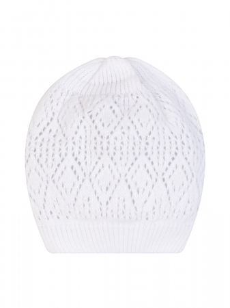 Детская легкая вязаная шапочка из мягкого акрила однотонного цвета. Связана ажурным узором ромбиками. По краю эластичная вязка. Благодаря этому плотно сидит на голове. Подходит для прохладной погоды летом. Эффектно завершит образ девочки.