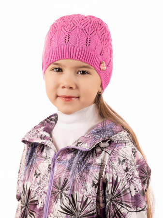 Детская легкая вязаная шапочка из мягкого акрила однотонного цвета. Связана ажурным узором ромбиками. По краю эластичная вязка. Благодаря этому плотно сидит на голове. Подходит для прохладной погоды летом. Эффектно завершит образ девочки.
