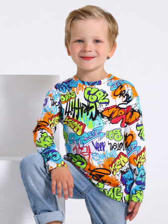 Лонгслив для мальчика выполнен из кулира – легкого хлопкового набивного полотна. Изделие прямого силуэта с длинными рукавами со спущенной линией плеча. Уход: только машинная стирка (руками не стирать!) при температуре 40 градусов, без предварительного замачивания.
