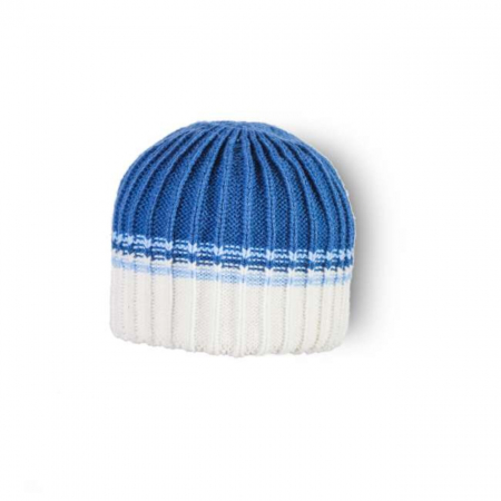 Шапка детская без отворота с вывязанным и стянутым верхом, с имитацией отворота контрастными цветами и объемной вязкой "английская резинка".
