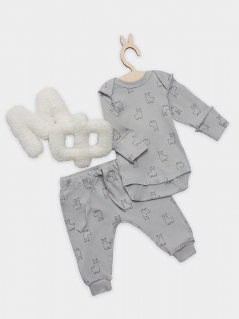 Детский комплект, состоящий из боди и ползунков, выполнен из мягкого интерлока, который обеспечивает комфорт и нежное прикосновение к коже малыша. Швы расположены на лицевой стороне изделия, что делает его особенно деликатным и безопасным для чувствительной детской кожи. Боди имеет круглую горловину, окантованную бейкой из основного материала, и длинные рукава, обеспечивающие тепло и удобство. Застежка на кнопки позволяет легко переодевать ребенка, не причиняя дискомфорта. Ползунки с открытыми ножками не ограничивают движения, а эластичный пояс мягко фиксируется на талии. Манжеты из трикотажной рибаны по низу изделия обеспечивают хорошую посадку и сохраняют форму. Комплект идеально подходит для ежедневного ношения, сочетая в себе практичность, комфорт и заботу о малыше.