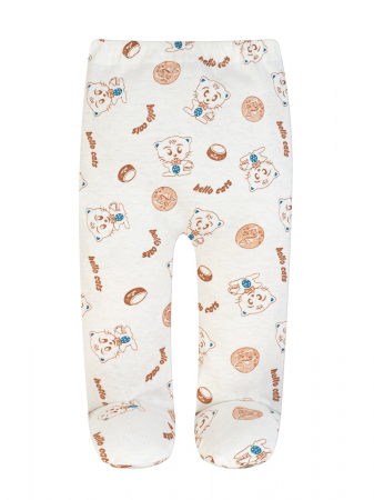 Приятный к телу, дышащий, прочный, износостойкий трикотаж. Практичные короткие ползунки с закрытыми стопами, можно не использовать носочки. Пояс на резинке. Сшиты из белого трикотажа с набивным рисунком белые котята