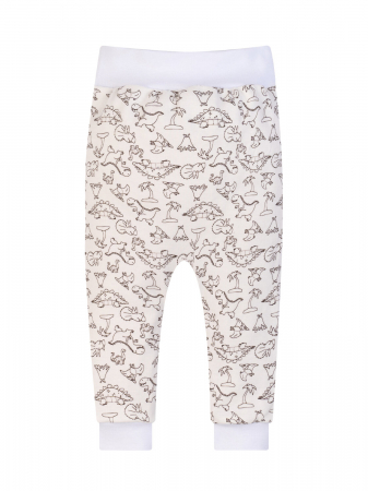 Нежный к телу, дышащий, эластичный трикотаж. Удобные ползунки с открытой ножкой. Пояс из эластичного мягкого трикотажа (на еврорезинке). Манжеты на штанинах. Выпускаются из трикотажа молочного цвета с рисунком динозавры.