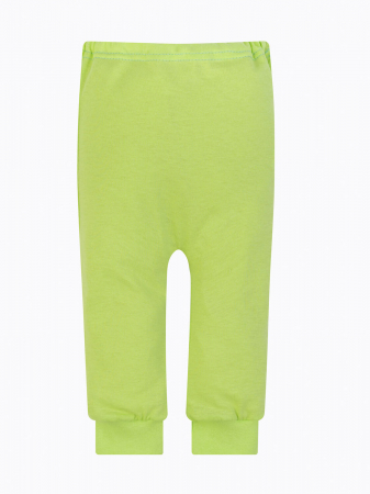Гладкий и мягкий на ощупь, лёгкий, гипоаллергенный трикотаж. Короткие трикотажные ползунки. В поясе эластичная резинка. На штанинах двухслойные манжеты. Салатовый красивый цвет.