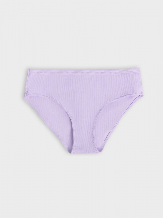 Деталь переда цельнокроеная. Ластовица из трикотажного кулирного полотна SJ-001.01.140, 100% хлопок, 140гр, 175см. Задняя деталь цельнокроенная. Верхний срез трусов обработан окантовкой из основного полотна с эластичной тканой жилкой внутри, WT4-10. Нижние срезы трусов обработаны тканой жилкой 6 мм, WT4-6