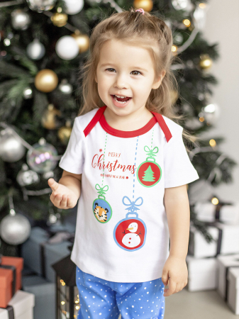 Футболка новогодняя Батик детская с короткими рукавами. Коллекция трикотажа для мальчиков и девочек с праздничными принтами.
