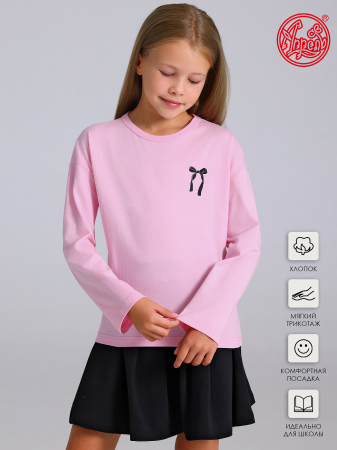 Лонгслив для девочки выполнен из кулира – легкого хлопкового плотна. Изделие прямого силуэта и свободного кроя, с длинными рукавами со спущенной линией плеча, вырез горловины обработан эластичной бейкой из полотна компаньона, украшено стильным принтом. Уход: только машинная стирка (руками не стирать!) при температуре 40 градусов, без предварительного замачивания. Изделия с печатью перед стиркой необходимо вывернуть на изнаночную сторону.