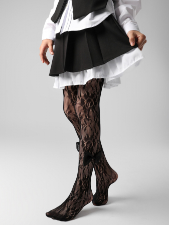 Лёгкие, капроновые колготки для девочки, декорированные ажурным узором и атласным бантиком. Модель прекрасно подойдёт как для торжественных мероприятий, так и для повседневного образа.