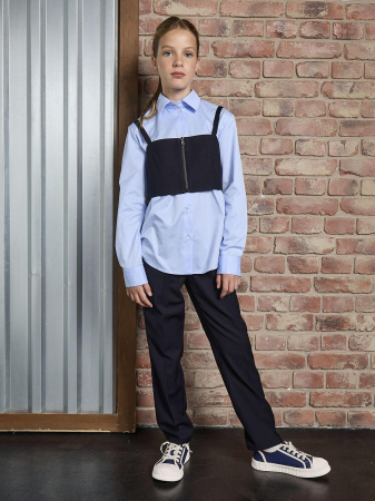 Классические зауженные брюки для девочки в элегантном синем оттенке. Удобная регулировка пояса – внутренняя резинка с петлями и пуговицей позволяет идеально подогнать размер по фигуре. Стройный силуэт – зауженный крой подчеркивает линию ног, сохраняя комфорт. Качественная костюмная ткань – тонкая, но плотная, приятная к телу и хорошо держит форму. Практичные боковые карманы – удобство в повседневной носке. Универсальный синий цвет – легко сочетается с рубашками, блузками, свитерами и футболками. Идеальный выбор для школы, праздников и повседневной носки.