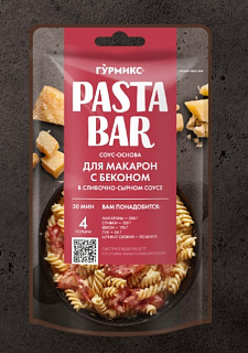 Приготовьте вкусный ужин с помощью Соус-основы для приговления макарон с Беконом в Сливочно -Сырном соусе от Гурмикс. Вам понадобится : Соус-основа "сливочно-сырный" 120 г (1 упаковка), макароны 200г, сливки 10% 120г , бекон копченый 170 г, лук репчатый 50г, масло сливочное 3 ст. ложки. Шпинат свежий по вкусу. Подготовка: Отварите макароны в подсоленной воде до состояния "альденте". Нарежьте бекон тонкими ломтиками, лук-перьями. На разогретом подсолнечном масле обжарьте лук и бекон до золотистой корочки. Добавьте сливки, соус из пакета, хорошо перемешайте и прогрейте 1-2 минуты. Добавьте подготовленные макароны и шпинат, перемешайте до полного распределения соуса. Советы: Чтобы понять готовность макарон, пробуете их "на зубок", они должны сохранить некоторую твердость, которая ощущается при укусе. Готовое блюдо можно посыпать тёртым сыром пармезан, украсить зеленью.