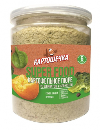 Подружим Вас с овощами за 5 минут! Для приготовления наших готовых картофельно-овощных смесей для гарниров мы используем высококачественные картофельные хлопья, приготовленные из свежего картофеля и натуральный порошок брокколи и шпината. Без добавления усилителей вкуса и ароматизаторов. SUPERFOOD - гарнир из 7-ми овощей у вас на тарелке через 5 минут. Достаточно залить горячей водой и немного подождать. 4,2 гр клетчатки на одну порцию, VEGAN, 6 порций в удобной банке. Состав: картофельные хлопья (картофель 99%, эмульгатор Е471, стабилизатор Е450i, антиокислители: Е223, Е304, регулятор кислотности лимонная кислота, краситель куркумин), шпинат сушеный, брокколи сушеная, картофельный крахмал, кукурузный крахмал, морковь сушеная, лук жареный (лук сушеный, растительное масло, соль), соль, лук зеленый сушеный, укроп, чеснок, перец черный молотый, регулятор кислотности лимонная кислота.