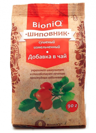 Полезные свойства: укрепляет иммунитет, помогает бороться с простудой, выводит токсины. Сушеный шиповник BioniQ - традиционная натуральная добавка в чай, домашние отвары и настои. Он был собран в Крыму в начале осени, когда плоды полностью созрели. Плоды шиповника рекордсмены по количеству витамина С в составе. Также они содержат витамины Р и К и различные органические вещества.