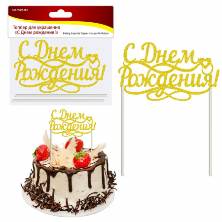 Придайте индивидуальности своему празднику или удивите Ваших родных и близких. Выразите свое поздравление украсив торт или другую выпечку яркой и красивой надписью: «С днем рождения!». Стол, сервированный выпечкой с таким топпером придаст ему оригинальности и поднимет настроение гостям! Изготовлено из бумаги и пластмассы (полипропилен).