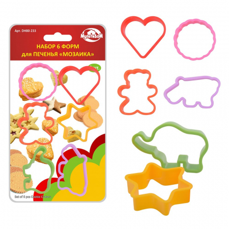 Набор форм для печенья - отличное приобретение, которое поможет реализовать любые кулинарные фантазии. Особенно праздничные, когда хочется удивлять! Они позволяют без труда приготовить красивую и оригинальную выпечку, затратив при этом минимальное количество времени. Формы для печенья просты в эксплуатации, долговечны. Привлекайте к творчеству детей, вместе украсив, получившиеся печенья. Используйте для выпечки Ваши любимые рецепты. Изготовлено из пластмассы (полипропилен). Размеры: круг диаметр 5см; сердце 5,5х5,3см; звезда 5,5х5,5см; медведь 5х5,5см; слон 6х4см; бегемот 6,5х4см; Высота 1,5см. После применения рекомендуется промыть губкой с использованием жидких моющих средств.