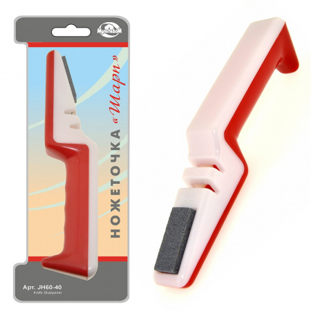 Применяется для заточки ножей и ножниц. Конструкцией предусмотрено два вида обработки инструментов: с помощью дисков, обеспечивающих безопасность, и вмонтированного абразивного камня, благодаря которому можно быстро довести инструмент до рабочего состояния. Благодаря своей простоте и надежности, данное изделие позволит быстро подготовить инструмент к работе. Изготовлена: корпус из пластмассы (полистирол), диски из стали, брусок из абразивного камня.