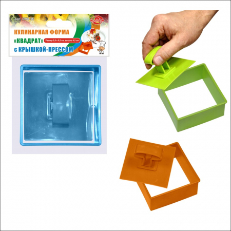 Кулинарные формы – удобный и незаменимый инструмент в арсенале каждой хозяйки для подготовки праздничного стола. Эти специальные полые формы используются для оформления блюд, помогут сервировать закуски и десерты, а также с их помощью можно вырезать идеально ровные фигуры из теста. Применение формы при сервировке позволит удивить гостей эффектными шедеврами кулинарного искусства - вы сможете красиво подать на стол практически любые салаты, закуски и блюда, которым необходимо придать идеальную строгость форм. В набор входит форма размером 9,5х9,5 см / высота 4,5 см , которая комплектуется крышкой-прессом. Крышка-пресс свободно входит в форму, применяется для выталкивания формованного порционного блюда на сервировочные тарелки. Изготовлено из пластмассы (полипропилен). После применения рекомендуется промыть губкой с использованием жидких моющих средств. Размер 9,5 х 9,5 см, высота 4,5 см.