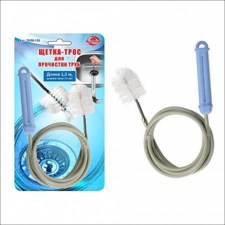 Это ручное приспособление предназначено для чистки канализационных и вентиляционных трубопроводов, кухонных вытяжек и дымоходов. Щетка на конце троса позволяет деликатно устранить засор, не царапая поверхности трубопроводов. Щетка-трос очень проста в использовании, с ней любому под силу справиться с засором! Длина 1,2 м, диаметр троса – 5,5 мм. Изготовлено: трос – из коррозионностойкой стали с полимерным покрытием, щетка и ручка из пластмассы (полиропилен).
