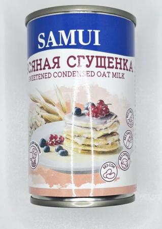 Овсяное сгущенное молоко без белого сахара SAMUI — вкусный вегетарианский продукт, который разнообразит рацион, делая его слаще, ярче и вкуснее. Растительная пп-сгущенка имеет нежную кремовую текстуру и вкус овсянки. Такие безлактозные и безглютеновые продукты идеально подойдут для людей с ограничениями в питании, а также для тех, кто просто хочет попробовать что-то новое. Сгущенка низкокалорийная — и это идеальный веган-десерт для тех, кто следит за весом или считает калории. Овсяная вегетарианская сгущенка имеет в составе тростниковый сахар, у него более богатый минеральный состав и ниже гликемический индекс, чем у белого. Низкокалорийное сгущенное молоко можно также использовать как топпинг для выпечки, мороженного или других десертов.