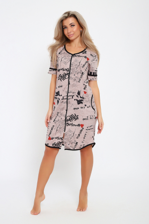 Халат на молнии полуприлегающего силуэта с короткими рукавами на манжетах. Карманы в боковых швах. Низ изделия полукруглый.