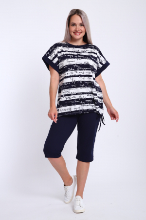 Костюм женский футболка и бриджи. Футболка свободного кроя, плечо спущенное на манжете. Низ футболки собирается на шнурок. Бриджи на резинке, без карманов