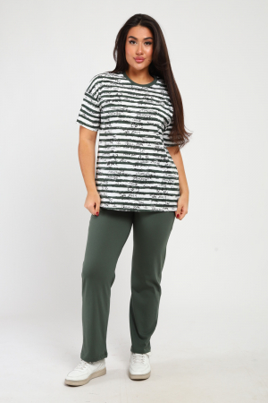Классический и удобный трикотажный костюм с брюками из легкой хлопковой ткани. В комплекте костюма представлены кофта свободного кроя и брюки универсальной посадки. Костюм - идеальный вариант домашней одежды для женщин, также прекрасно подойдет и для повседневной носки.