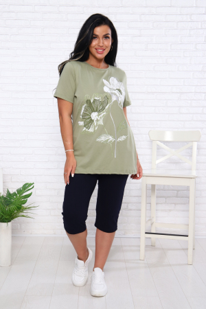 Костюм женский футболка и бриджи. Футболка полуприлегающего силуэта с короткими рукавами. Бриджи с карманами.