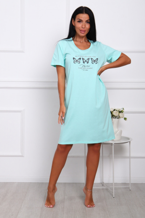 Ночная сорочка женская, выполнена из трикотажного полотна кулирка. Сорочка с коротким рукавом, на полочке выполнена печать.
