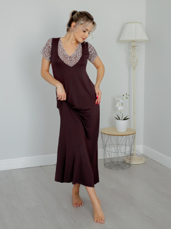 Ночная сорочка женская длинная из вискозного полотна. Ночная сорочка А-силуэта полуприталенного кроя. Эффектная и стильная сорочка для сна и отдыха отличный наряд для дома. Короткие рукава и глубокий вырез горловины сделаны из эластичного кружева. Кружевной вырез эффектно подчеркивает зону декольте. Рубашка длинная, поэтому подойдет и на высоких. Состав ткани 92 % вискоза и 8 % эластан. Ночную сорочку удобно надеть и для сна и использовать как домашнее платье. Ночная рубашка представлена большим размерным рядом, в продаже размеры с 44 по 62. Натуральная шелковистая ткань позволяет коже дышать, превращает сорочку в комфортную одежду для дома. Эластичное и эффектное кружево добавляет ночной сорочке сексуальности и женственности. Домашняя одежда для женщин может быть красивой и сексуальной. Вискоза отлично тянется, а это значит, что сорочка подойдет для беременных и кормящих, возьмите ее с собой в роддом и будете самой элегантной мамочкой.