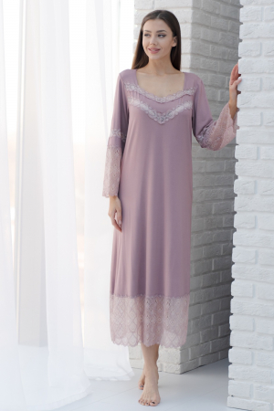 Длинная ночная сорочка из вискозы с кружевом в цвет