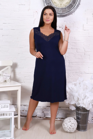 Сорочка без рукава. По груди отделка из кружева в форме угла. Низ изделия обработан краевым швом.