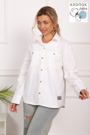 Рубашка женская офисная, свободного силуэта, длинный рукав. Из 100% натуральной ткани (хлопок 70% и лён 30%). Рубашка очень комфортная: рукава не сковывают движения; удобная длина, прикрывающая зону бедер; два нагрудных кармана, дышащая ткань. Трендовый силуэт и акцентные кокосовые пуговицы создают стиль этой рубашки. Сочетается и с денимом и с классической одеждой.