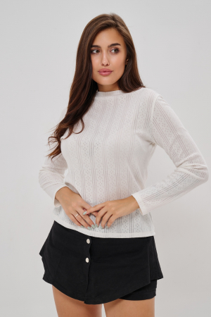 Женский лонгслив из деликатного хлопкового трикотажа с ажурной вязкой. Приталенный крой создает изящный силуэт, подчеркивая природные очертания фигуры, а округлый вырез горловины обеспечивает удобство и эстетичное оформление зоны декольте. Материал нежно прикасается к коже, дарит приятные тактильные ощущения и дополнительную заботу о комфорте. Наличие сдвоенных размеров позволяет выбирать оптимальный вариант посадки согласно индивидуальным особенностям фигуры. Лонгслив идеально впишется в ваш гардероб, дополнив повседневные образы легкой романтичной нотой.
