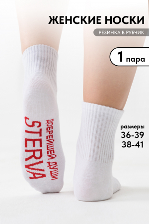 Женские носки комплект 1 пара. на стопе надпись Добрейшей души STERVA. На выбор черный или белый цвет.