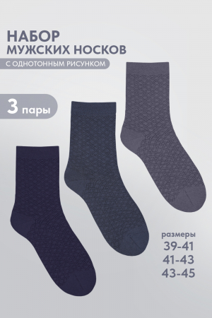 Набор мужских носков. В комплекте 3 пар, светло-серая, темно-серая и темная расцветки. Состав ткани: 80% х/б, 17% П/А, 3% эластан.