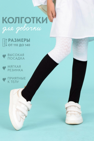 Оригинальные колготки для школьников. Однотонный верх с зигзагообразным узором, низ однотонный гладкий. Спокойный дизайн и расцветка колготок отлично подойдут для стильного школьного образа.